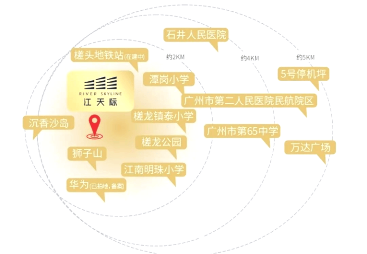 项目占据珠江上游稀缺岸线资源,最近距离珠江仅约 60 米,坐拥一线无遮挡江景视野,是主城区难得一见的滨江宜居大盘。依托广州 “一江两岸三带” 规划,项目周边打造滨江绿道、湿地公园、休闲广场等生态配套,形成约 10 公里最美滨江景观带,成为业主日常休闲、运动健身、亲子游玩的天然场所。