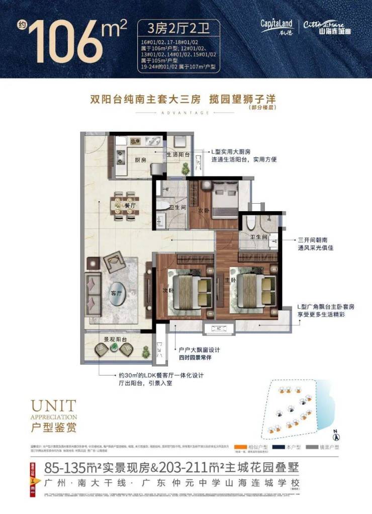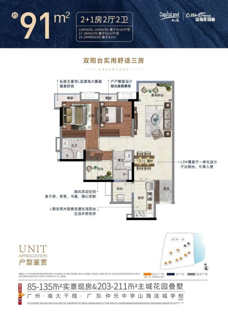 建面约92-131㎡的三至四房户型,是刚需改善置业的理想选择。低密度的小高层设计,保证了每户都有良好的通风和采光条件。特别是南向三开间的布局,让每一间卧室都能享受到充足的阳光。所有户型都配备了主套设计,并设置了270度全景飘窗,使得无论是在客厅还是卧室,你都能轻松欣赏到美丽的山海景色。
