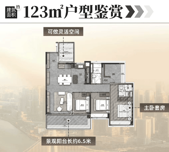 珑璟台的产品力,集中体现在其颠覆性的户型创新上。主力户型建面约123㎡做到4+1房,堪称琶洲“空间魔术师”:四开间朝南、6.5米双面宽景观阳台,采光通风极佳;更巧妙的是“魔方空间”设计——设备平台、厅卧均可灵活改造,轻松实现多功能室拓展。若将客厅与卧室打通,可形成约62㎡的LDKG一体化大方厅,社交尺度媲美180㎡大平层。而131㎡户型则配备7.5米南向阳台、L型主卧衣帽间与环幕飘窗,躺卧即可俯瞰湿地或CBD天际线。正如建筑大师福斯特所言:“窗外的风景,决定了房子的价值。”珑璟台以120㎡级面积,实现了200㎡+豪宅才有的景观占有权——南望万亩湿地,北眺小蛮腰,这种资源稀缺性,在整个广州都极为罕见。
