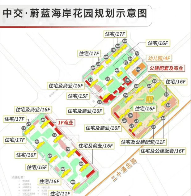 中交·蔚蓝海岸花园位于广州市南沙区万顷沙二十涌板块,是全广州最南端的海景盘。该项目占地约110671㎡,计容建面约311689㎡,容积率2.8,建筑限高80米。在调整后,实际计容建面减少至约188140㎡,容积率降至1.7,建筑限高分别为54米和临二十一涌一线塔楼限高40米。整个项目将分为三期建设,总共包括35栋住宅,每栋楼高11-17层。