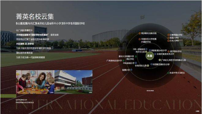 教育资源丰富且优质。项目自配 15 班幼儿园和 24 班小学,其中小学引进广州天河外国语教育集团合作办学。广州天河外国语学校自 2012 年创办以来,迅速成长为广州优质教育品牌,荣获多项称号。学校毗邻月亮湖,将自然意境融入建筑,打造现代山水书院,还原 “自然教育” 真意。隔壁缦云配建九年一贯制天河外国语教育集团学校,再加上周边天外、天执、清湾等公办名校,以及贝赛思、爱莎等顶级国际学校,为孩子提供了多元化、高品质的教育选择。