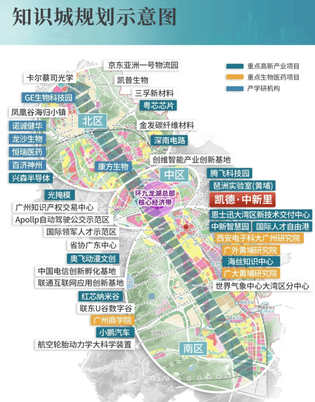 中新知识城南区聚集了小鹏汽车、中国纳米谷、奥飞文创中心、中新国际智慧产业园等重大项目,被称为“最值钱一公里”。区域内的“三集群两高地”战略正在全面实施,预计达产产值将超过5500亿元。这些都表明中新知识城不仅是科技企业和研发总部的理想选择,也是宜居宜业的优质社区。