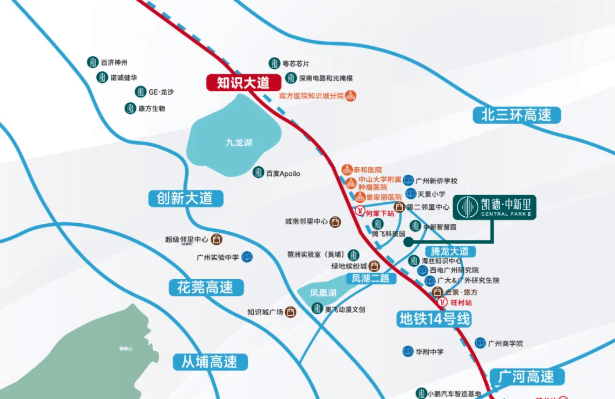 项目紧邻知识大道,可快速连接全城各个方向。步行仅需600米即可到达地铁14号线知识城支线何棠下站,45分钟可达嘉禾望岗,通过镇龙站换乘21号线,快线1站到科学城,4站直达天河,便捷通达广州市区主要地段。