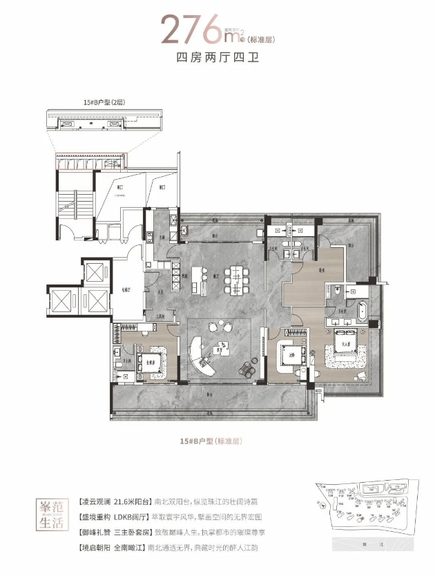 户型面积:约125-142平方米四房两厅两卫/214-313平方米大平层