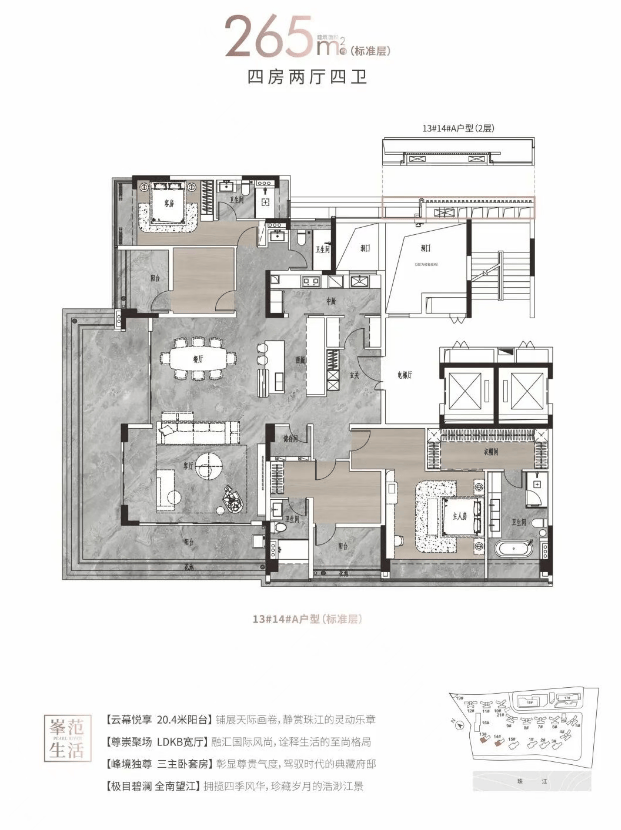 丰富户型选择:满足各种改善买家的需求,从125平方米到313平方米的大平层均有覆盖。