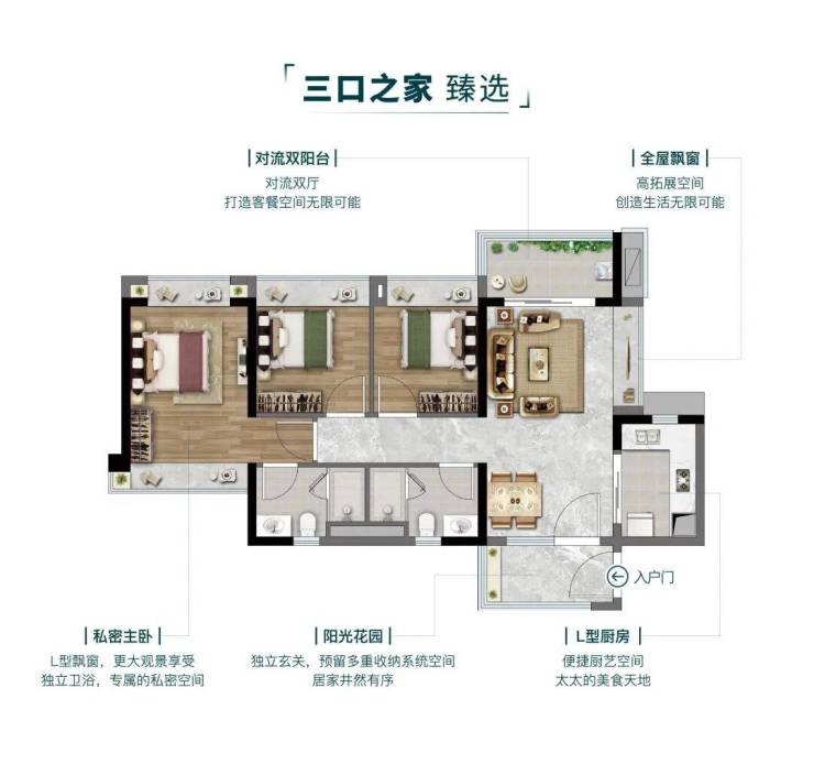【建面约85㎡单边对流三房两厅两卫】