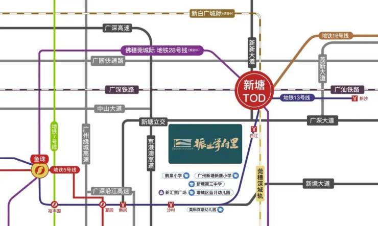 穗莞深城轨已通车,可快速穿梭广州、东莞、深圳;新白广城轨(建设中),未来约20分钟可达白云机场。