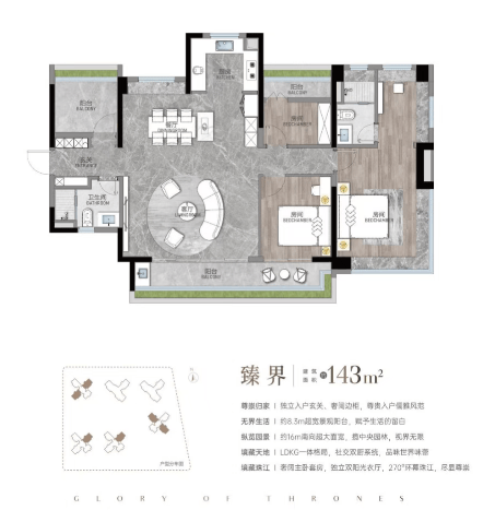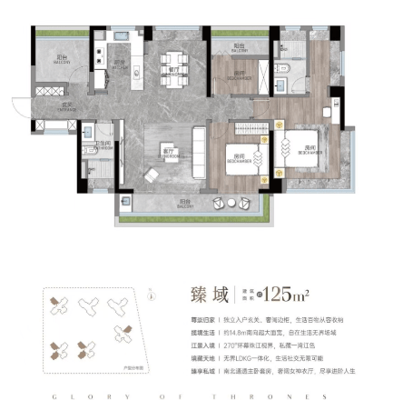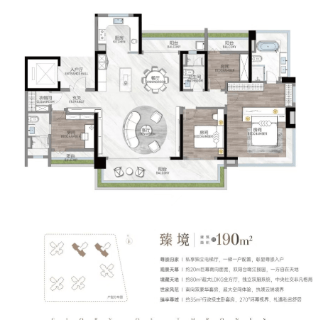 建面约 115 - 190㎡滨江奢宅,设计精致,得房率高,户型与园林设计用心。