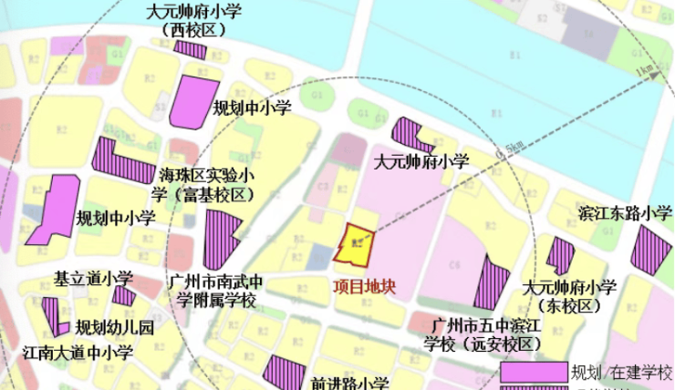 答:根据广州市“就近入学”原则及海珠区现行招生政策,项目所在地段周边教育资源丰富且优质。小学方面,周边有滨江东路小学、大元帅府小学等知名学校;中学则有广州市第五中学(滨江学校)、南武中学等优质教育资源。需要明确的是,广州义务教育阶段学位安排以教育部门每年公布的招生地段划分为准。项目属于海珠区公办学校招生范围,具体对口学校需以项目交付后、子女入学当年教育部门公布的官方文件为准。海珠区已全面推进集团化办学,教育资源将更加均衡优质。