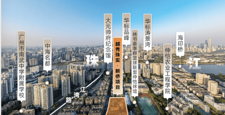 答:项目位于海珠区滨江中板块,具体在仲恺路与江湾路交汇区域。其核心价值在于三点:一、地段稀缺性:地处珠江前航道,是海珠滨江板块断供多年后极为罕见的新增住宅用地,占位广州传统城市中轴与黄金岸线。二、生活成熟度:周边环绕中海名都、富基广场等成熟社区,生活氛围浓厚,商业、医疗、文化配套极度成熟,属“买入即享”的现成顶级生活区。三、江景资源:距珠江直线仅约350米,中高层单位可望江,享受“近江不临江”的恰到好处的景观与静谧。