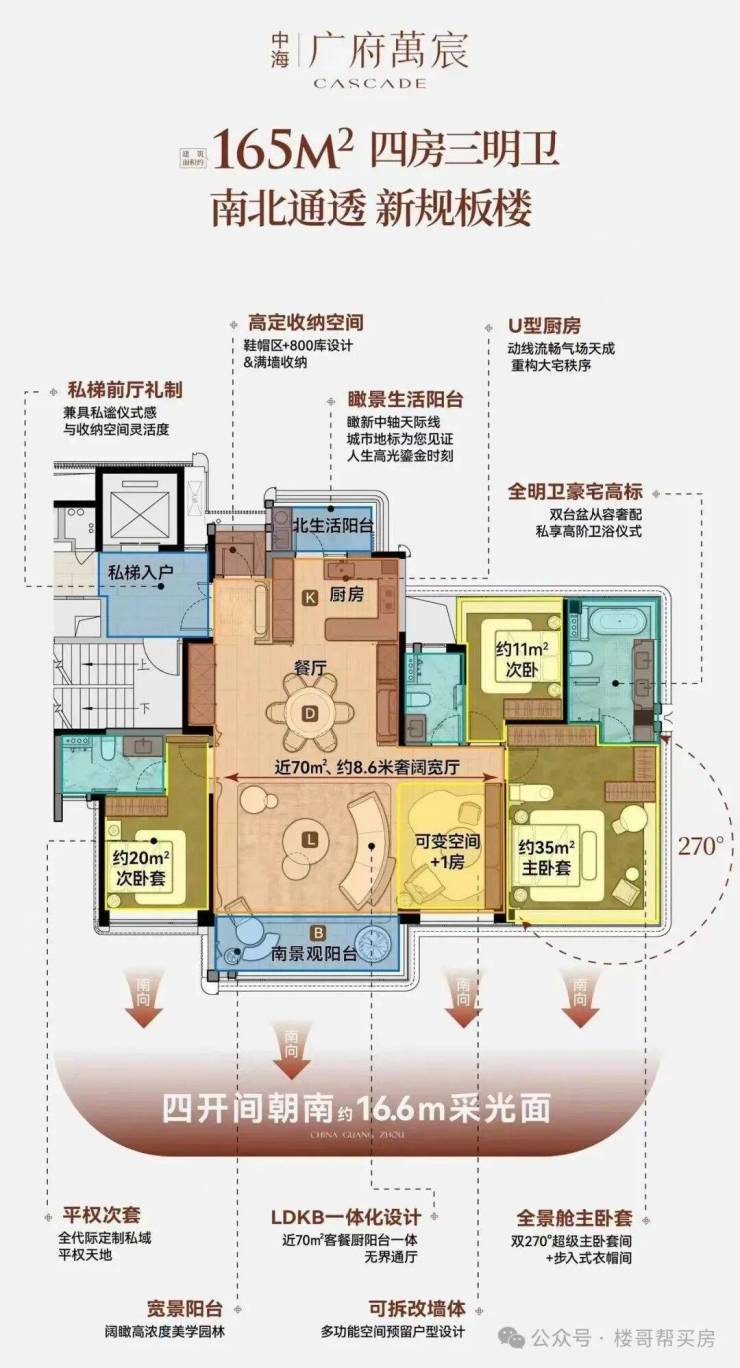 四、户型设计:165㎡纯四房三卫双主套,高拓柔性定制空间