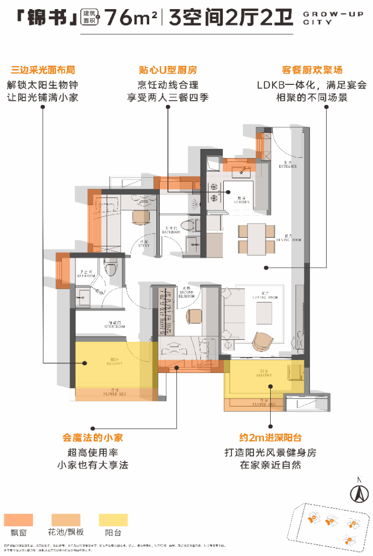 6. **项目76㎡户型特点——越秀·大学城·星汇锦城**
