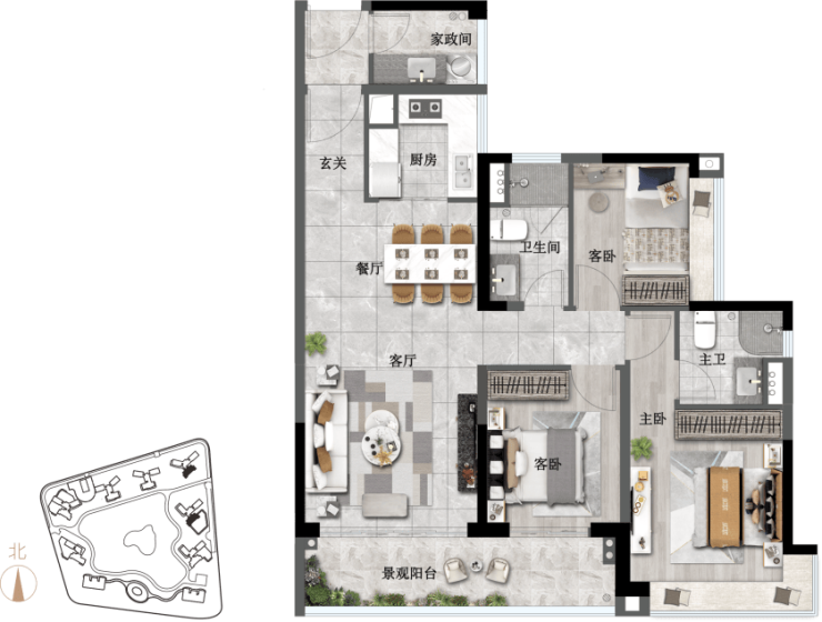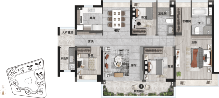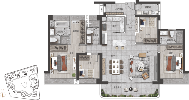 在产品力上,我们坚持“以人为本”。无论是 110㎡的精致三房,还是 195㎡的奢阔四房,每一个户型都经过上百次的优化迭代。玄关的创新家政间、南向客厅连接的大进深景观阳台、主卧的 270°超大飘窗、U 型厨房的宽敞布局……这些细节不仅提升了居住的舒适度,更彰显了主人的品味与格调。