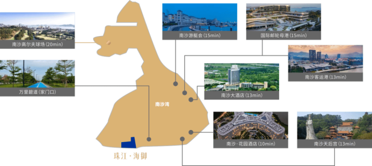 项目距离南沙客运港仅数公里,乘坐邮轮可直达深圳、香港及东南亚主要城市。同时,距离广州白云国际机场、深圳宝安国际机场均在 1 小时车程范围内,方便商务出行和国际交流。