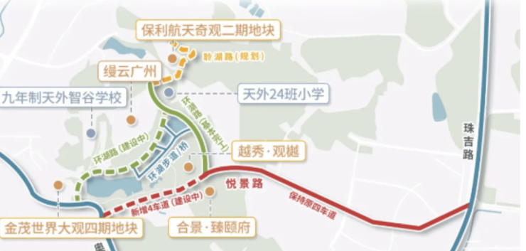 金茂越秀璞樾墅位于天河智谷片区,周边生态与城市资源兼备,是未来发展潜力巨大的片区。项目毗邻约243万平方米原生山林和5.3万平方米日月双湖,生态环境宜居,负氧离子浓度高,生活环境兼具舒适与健康。片区交通网络逐步完善,奥体路已通车,悦景路待开通,同时项目配有内部公交总站直达21号线大观路站,可便捷通达天河核心及珠江新城,满足日常通勤与高端生活需求。周边规划合理,片区内未来还将形成高端湖居商业体系,吸引优质生活资源进驻。天河区金茂越秀|璞樾·墅 售楼处24小时电话400-6557-087 (售楼部认证),预约专属顾问一对一服务,尊享内部折扣。