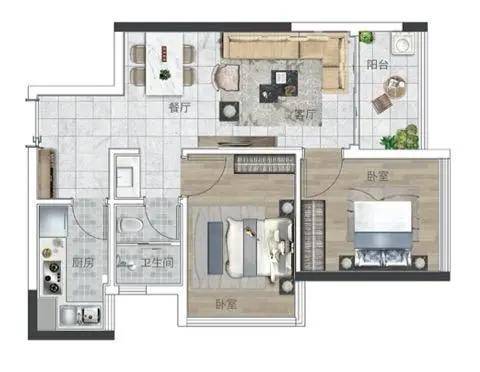 文中虽未明确提及得房率,但从整体项目定位和户型设计来看,每个户型都注重空间的合理利用。建面约 62 - 64㎡的二房户型,对于小家庭或者单身人士来说,空间布局紧凑且实用,能充分满足基本生活需求。77 - 79㎡的三房户型,为家庭人口较多的住户提供了足够的居住空间,房间功能分区合理,能保证居住的舒适性。89㎡的 (3 + 1) 房更是灵活多变,多出来的空间可以根据家庭需求改造成书房、儿童房或者休闲娱乐室,满足不同家庭结构和生活方式的需求。这些户型设计体现了对居住者生活需求的深入理解和精准把握,通过合理的空间规划,提升居住体验。产品一:62㎡ 两房两厅一卫