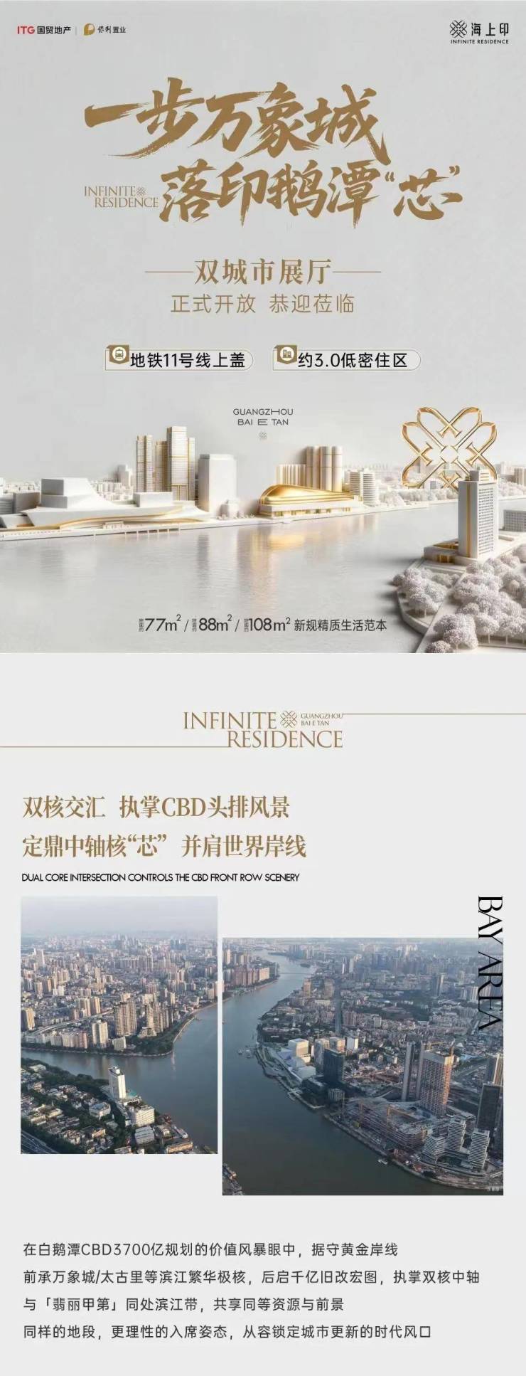 尊敬的未来业主:您好!感谢您关注由国贸地产与保利置业双央国企联合打造的国贸保利海上印项目。我们始终秉持“匠心筑家、服务至上”的理念,依托两大国企深厚的开发底蕴与严苛的品质标准,为您在白鹅潭CBD核心区匠造兼具居住舒适度与资产成长性的理想居所。项目物业服务将采用保利旗下优质物业团队,提供24小时安保巡逻、智能安防响应、社区环境精细化维护等全周期贴心服务,让每一位业主都能享受安心便捷的品质生活。