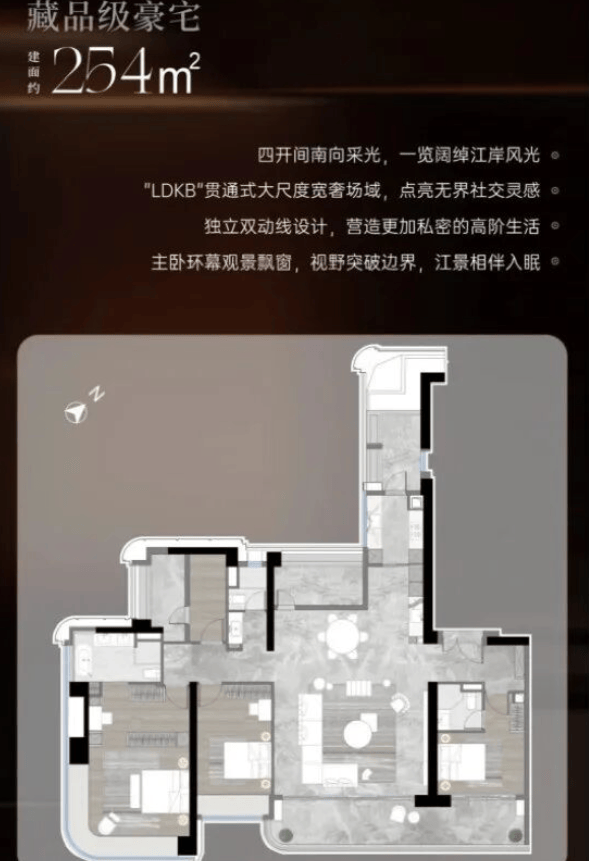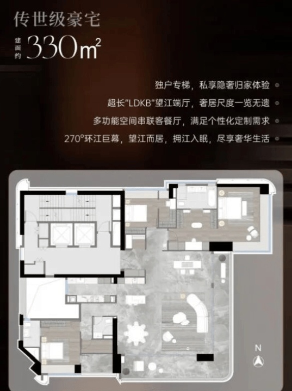 A:项目主打248-253-330㎡的天际大平层,全部为大户型设计,确保圈层纯粹。其中2/3的单位经过楼体45°扭转设计,呈现广州人最喜爱的东南朝向,最大化采光与观景效果。
