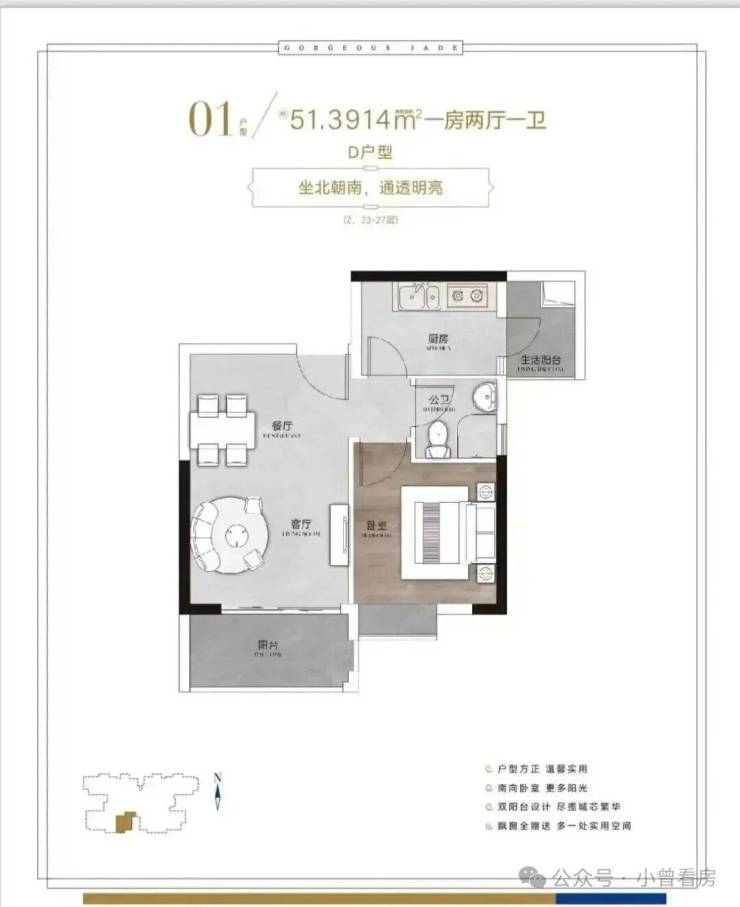 约51㎡一室一厅:总价约194万元起。经典方正户型,客厅连接生活阳台,明厨明卫,功能分区清晰。作为年轻人扎根主城的第一套房产,或高净值人士的便捷行宫,它以极高的实用性和低总价门槛,提供了入住海珠核心区的快速通道。