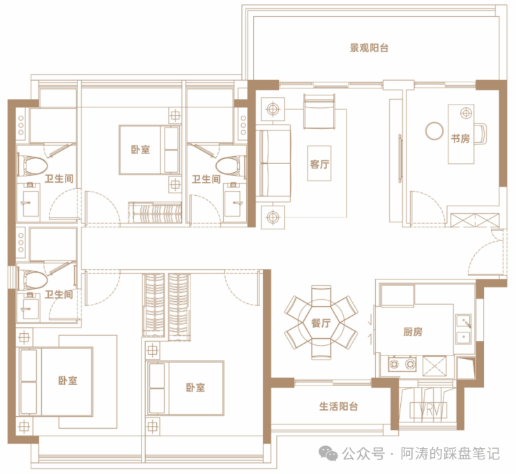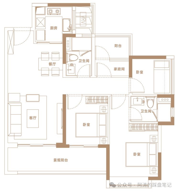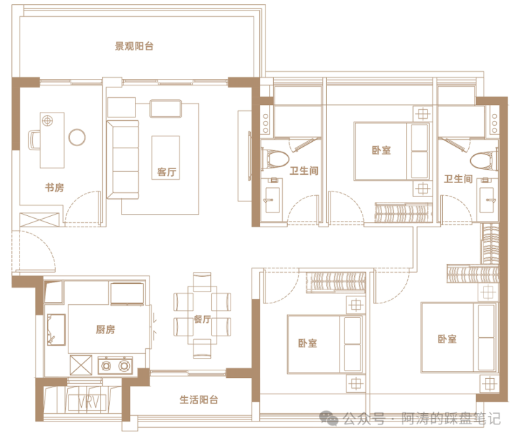 ✨【141㎡户型】南北对流双阳台四开间朝南,约1.8m*6.6m瞰江阳台,客餐厅无梁一体化,享双主卧套间宽阔私密空间。