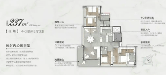 中海天幕湾推出的户型主要为180㎡和237㎡的大平层住宅,这些户型的设计充分考虑了空间尺度感与居住舒适度。每个房间都经过精心布局,动静分离,确保家庭成员之间既能够享受私人空间,又能方便地进行互动交流。大面积的采光窗使得室内光线充足,同时提供了绝佳的视野,让住户可以尽情欣赏莲花湾中心湖的美景。