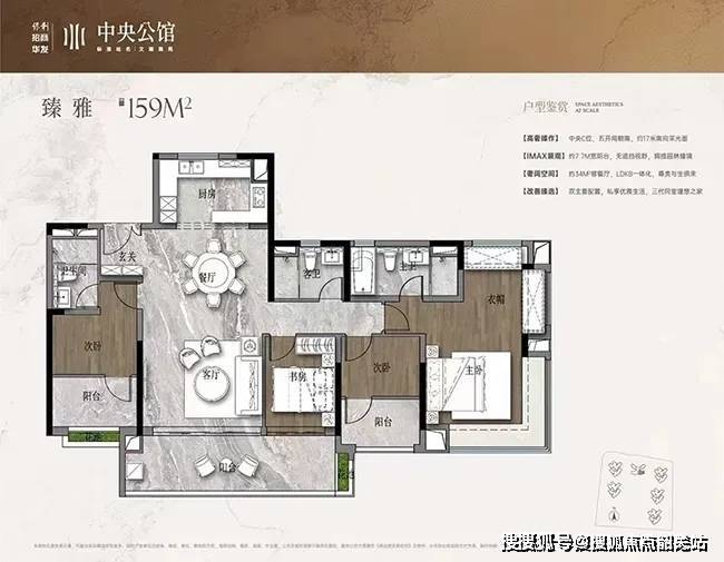 159㎡四房三卫:总价775万元起,南向户型,双主套设计,独立玄关与中西双厨,满足高端改善需求。