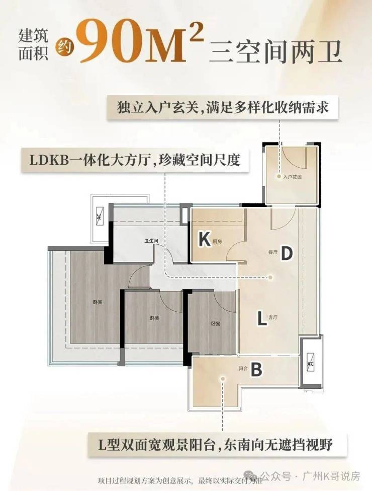 在售户型方面,全盘涵盖建面约89~122㎡的三四房户型,均为全南向新规设计,得房率高达100%以上。89㎡至99㎡的户型适合年轻家庭,通过L型阳台延伸空间感,满足功能性与总价的双重诉求。90㎡户型四开间朝南,卧室全部南向归置,厨卫北向,生活动线规整。92㎡户型则拥有百变功能的L型阳台,可根据家庭需求改造为茶室、健身房或次卧。99㎡户型实现真正的南北对流,LDK大方厅尺度阔绰。109㎡至122㎡的板楼户型则更适合多孩家庭或对空间有更高要求的改善群体。122㎡户型更是首发亮点,面积做到五个房间,能容纳三代同堂甚至住家保姆,独梯入户且同一层两户之间有墙面硬隔离,隐私性极佳。
