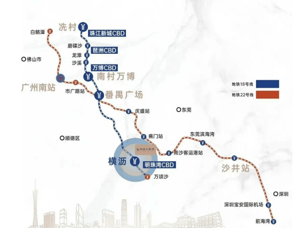 海语天悦湾距地铁18号线横沥站仅约500米,步行约6–8分钟即可进站。18号线作为广州南北快线,2站直达番禺广场,3站抵达琶洲,4站通达珠江新城,高效串联广州四大核心商务区。未来还将衔接15号线、南中珠城际等线路,进一步强化湾区通勤能力。自驾方面,项目紧邻横沥中路、金融大道等主干道,快速接入深中通道南沙支线,1小时内畅达深圳前海、中山、珠海。对于广深双城生活者而言,项目提供了“地铁+高速”双轨并行的高效出行方案。