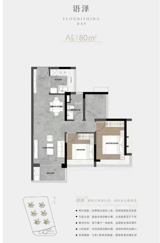 在售新规户型:80–141㎡三至四房,全南向蝶形设计兼顾实用与景观