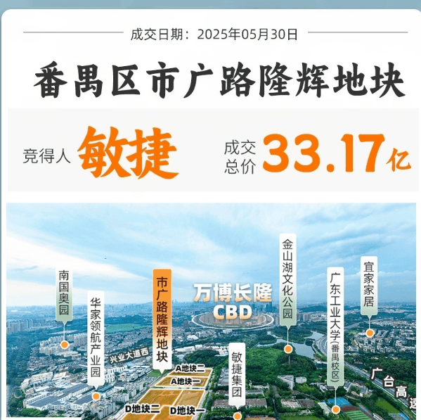 2025年,敏捷集团以33.17亿拿下番禺钟村隆辉地块,楼面价达到1.3万元/平方米。作为敏捷集团在区域内的又一力作,敏捷·万博金湖壹号不仅占据着得天独厚的地理位置,还拥有丰富的配套设施和卓越的设计理念。这里不仅紧邻繁华的万博CBD,还享有金山湖的优美自然景观,为都市精英提供了一个理想的居住环境。
