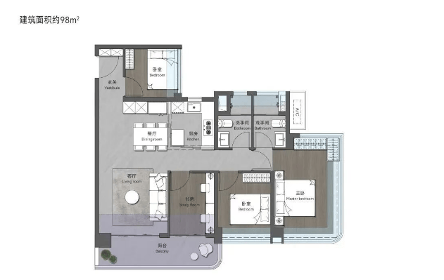 敏捷·万博金湖壹号推出了多种户型供购房者选择,包括98平方米的创意四房两卫、115平方米的大面积入户花园户型以及149平方米的超大横厅连接环幕阳台户型。所有户型均采用了大面积的低饱和度木饰面和云石纹理材料,营造出温馨舒适的居住氛围。