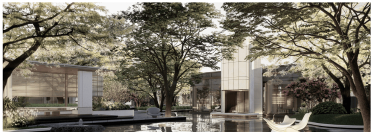 央璟颂秉承低密度生态规划理念,岛上总占地约四万五千平米,仅建设五栋高层住宅,营造宽松舒适的居住氛围。社区内部六重园林布局,结合林影游廊、浮岛花园、无边泳池及水岸平台,打造沉浸式度假体验。园林设计灵感源于安缦酒店森林盒子及奢牌美学,充分运用水景与绿植结合,形成室内外通透空间。低密度规划和生态园林不仅提升居住舒适度,也为家庭提供自然休闲空间,兼顾宁静与便利。