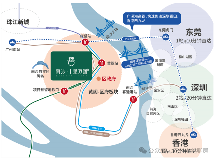 南沙·十里方圆精准落位南沙区黄阁板块核心区域,黄阁板块作为南沙自贸试验区核心组团、粤港澳大湾区几何中心重要节点,承接南沙行政、产业、交通多重红利,是南沙发展速度最快、配套兑现最成熟的板块之一。黄阁板块紧邻南沙区府,距离南沙区政府仅3公里,享受行政中心辐射的优质配套资源,同时毗邻庆盛枢纽,依托庆盛高铁站的交通优势,实现与广州主城、深圳、香港等地的快速联动,区域发展潜力巨大。