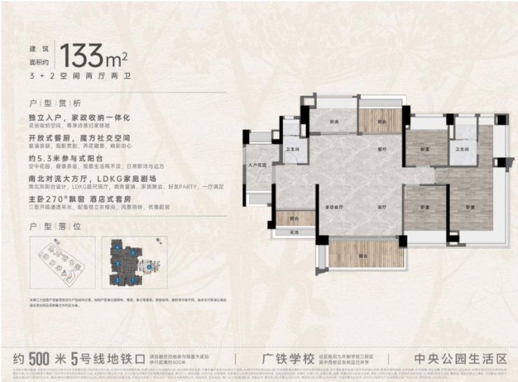 4. 建面约 133㎡ 4+1 房两卫(奢阔改善・三代同堂)