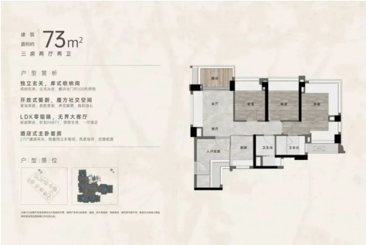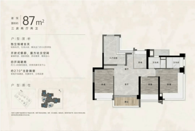 2. 建面约 88㎡ 三房两卫(全南向・明星户型)