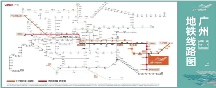 13 号线南岗 / 夏园站:步行约 1-1.5 公里,换乘 5 号线、7 号线、21 号线,快速通达天河、越秀、白云、增城全域