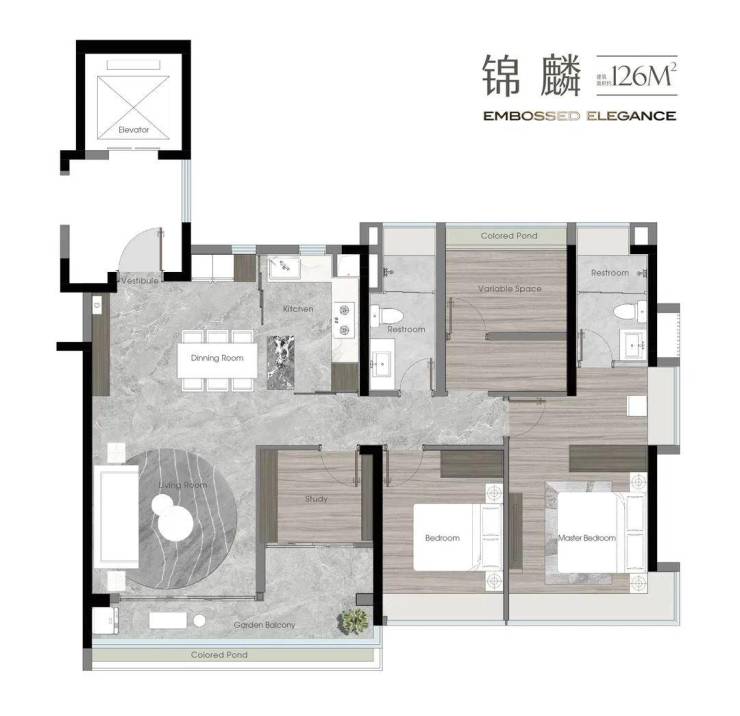 1. 建面约126㎡奢阔LDKG+X户型:该户型为尊贵端户,采用奢厅入户设计,南北对流,四开间朝南,通风采光效果极佳。LDKG+X设计可实现约60㎡大方厅,搭配约6.45米跑道式阳台,空间开阔通透,既能满足家庭日常起居需求,也能为亲友聚会提供充足空间,适合改善型家庭居住。