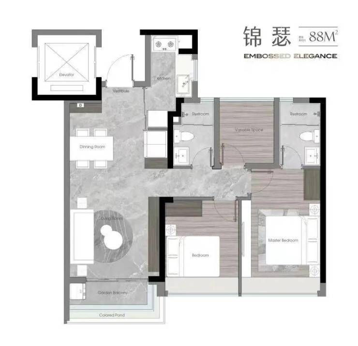 4. 建面约88㎡南向臻品户型:奢厅入户设计,南北对流,三开间朝南。主套带衣帽间,满足业主的收纳需求与居住私密性,户型布局方正,空间利用率高,适合刚需家庭选购。