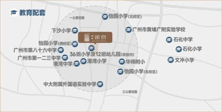 项目配建12班幼儿园和36班小学,已签约怡园小学教育集团,师资与管理模式与总校统一。3公里范围内,还有下沙小学、怡园小学东西校区、广州市第八十六中学等优质院校,形成了完整的全龄教育链条。