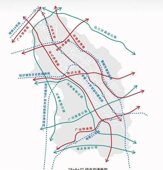虽然项目距离地铁14号线知识城站有一定距离(步行约需20-25分钟),但区域交通骨架已全面铺开。目前可通过花莞高速、广河高速等快速接入广州市中心,约30分钟车程直达珠江新城。更值得期待的是,知识城板块正构建“8轨5高7快”立体交通网络:除已运营的14号线及其支线、21号线外,新白广城际(在建)、白云机场联络线、37号线、广中珠澳高铁、广河高铁及有轨电车5号线等均在规划或建设中。未来建成后,将形成湾区“1小时生活圈”。对于自驾族而言,项目周边永九快速、知识大道、智慧大道等城市干道密集,通勤效率可观。不过对纯地铁依赖型买家,仍建议结合接驳方案综合考量。