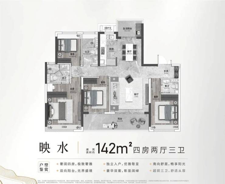 龙狮·璟珑府整体规划42栋住宅,包含22栋高层与20栋小高层洋房,容积率控制在较低水平——这在广州近8年出让的住宅用地中极为罕见(仅3宗地块容积率低于1.5)。项目主打建面约91㎡三房、106㎡三至四房、142㎡及168㎡四房以上大户型,覆盖从首次置业到高端改善的全周期需求。尤为值得一提的是,即便是91㎡的小户型,也采用小高层设计,并实现户户看花园、180°观景视野;而142㎡以上产品则采用纯板式结构、专梯专户,私密性与尊崇感兼备。整个社区以阶梯式布局排布楼栋,既最大化高层视野,又避免中低层视线遮挡,兼顾功能与美学。