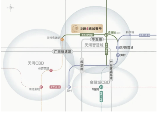 中建精诚壹号坐落在天河智慧城板块,临近火炉山森林公园,东临碧湖东大湖,享有得天独厚的自然环境。该区域作为广州第三中轴的重要组成部分,是粤港澳大湾区科技创新走廊的关键节点,拥有良好的发展前景。