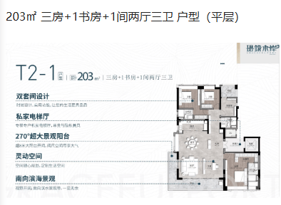 203㎡大平层更是拥有三房加书房及额外空间,专为高端改善型家庭打造。该户型空间尺度宏大,视野开阔,可俯瞰社区园林或远眺自然风光。主卧套房设计豪华,配备衣帽间与独立卫浴,满足高端居住需求。客厅与餐厅一体化设计,营造出大气磅礴的会客氛围。