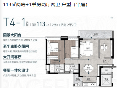 113㎡户型设有两房加书房,适合年轻小家庭或单身贵族居住。该户型采用南北通透设计,采光通风效果极佳,动静分区合理,保证了居住的私密性与舒适性。得房率高,空间利用率高,每一平方米都物尽其用。