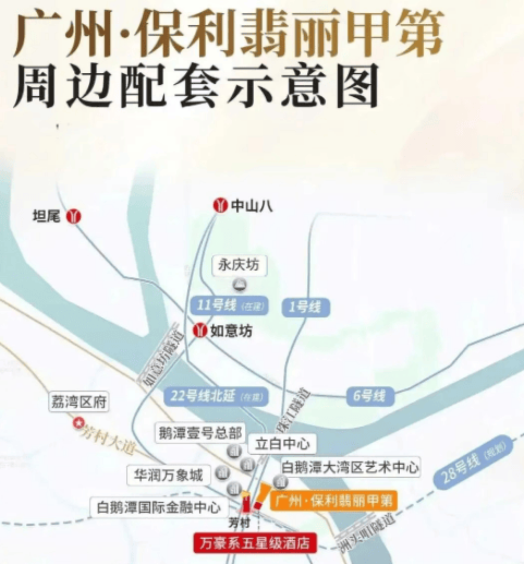 保利翡丽甲第位于广州市荔湾区陆居路,紧邻地铁1号线芳村站,距离约200米,方便换乘其他线路。未来,这里还将汇聚22号线、28号线等多条地铁线,形成“四线交汇”的超级交通枢纽,进一步提升区域内的通达性。