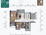 C户型:建面约95㎡复式四房两厅三卫,空间布局合理,兼顾舒适度与实用性。