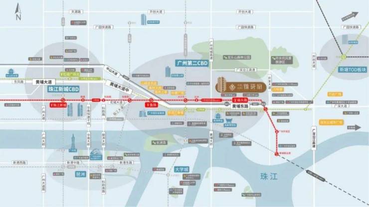 项目坐落在广州第二CBD的核心地带,该区域已与珠江新城CBD、琶洲CBD共同形成了“城市黄金三角”。规模相当于10个珠江新城,成为广州下一个十年发展的重要引擎。项目紧邻地铁5号线东延段庙头路站(预计2022年开通)和地铁13号线南海神庙站,周边还有BRT庙头站,交通网络发达,便捷直达珠江新城等主要商圈。