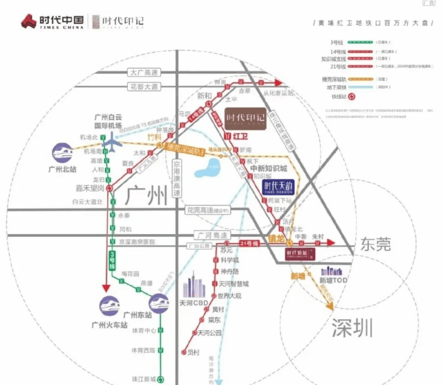 交通便利性是时代印记最突出的优势之一。项目距地铁14号线支线红卫站仅200-350米,步行约5分钟可达。搭乘该线,可快速换乘至21号线、14号线主线,直达科学城、天河智慧城乃至珠江新城核心区。自驾方面,周边环绕广河高速、从埔高速(已全线贯通)、花莞高速等多条动脉,30分钟内可覆盖白云机场、科学城、天河CBD等关键节点。尤其对在知识城、科学城工作的科技从业者、教师、医护人员而言,通勤时间普遍控制在20分钟内,真正实现“工作在园区,生活在花园”的理想平衡。