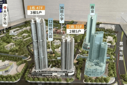 黄埔润府距离地铁5号线和7号线换乘站大沙东站仅约300-400米,步行即可轻松到达。通过这两条地铁线,居民可以快速直达珠江新城、金融城、科学城等重要商务区,大大缩短了通勤时间。此外,项目周边还有在建中的鱼珠隧道以及规划中的黄埔高铁站,进一步提升了区域内的交通便捷性。