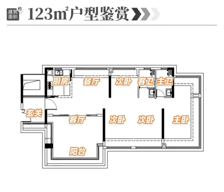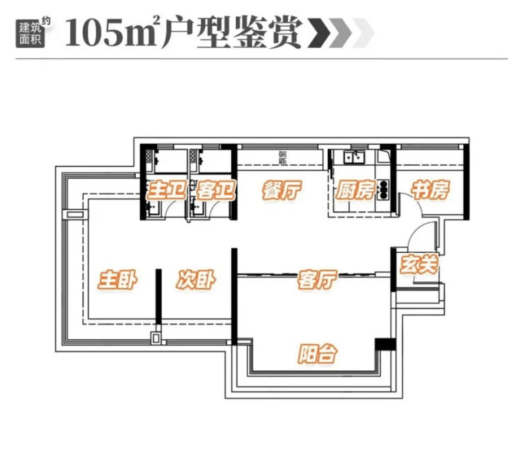6.3 改善优选:105-124㎡四房两厅两卫,空间平权更舒适